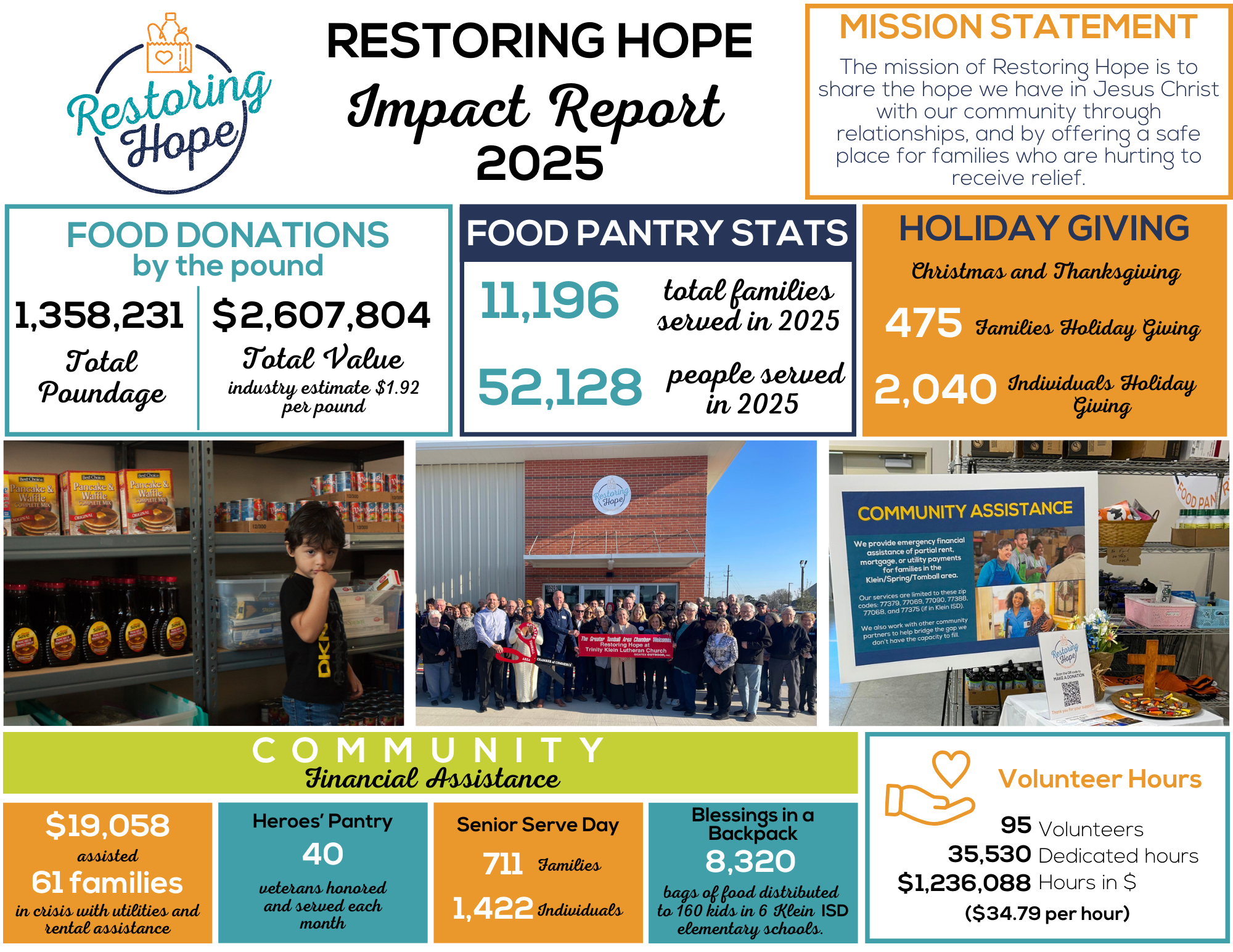 Join us for a one-hour fundraising event benefitting Restoring Hope, a ministry of Trinity Klein Lutheran Church.Our community is hurting more than ever, and Restoring Hope continues to feed thousands of people through the Food Pantry, provide meals for Klein ISD students, support veterans, and share the HOPE we have in Christ.